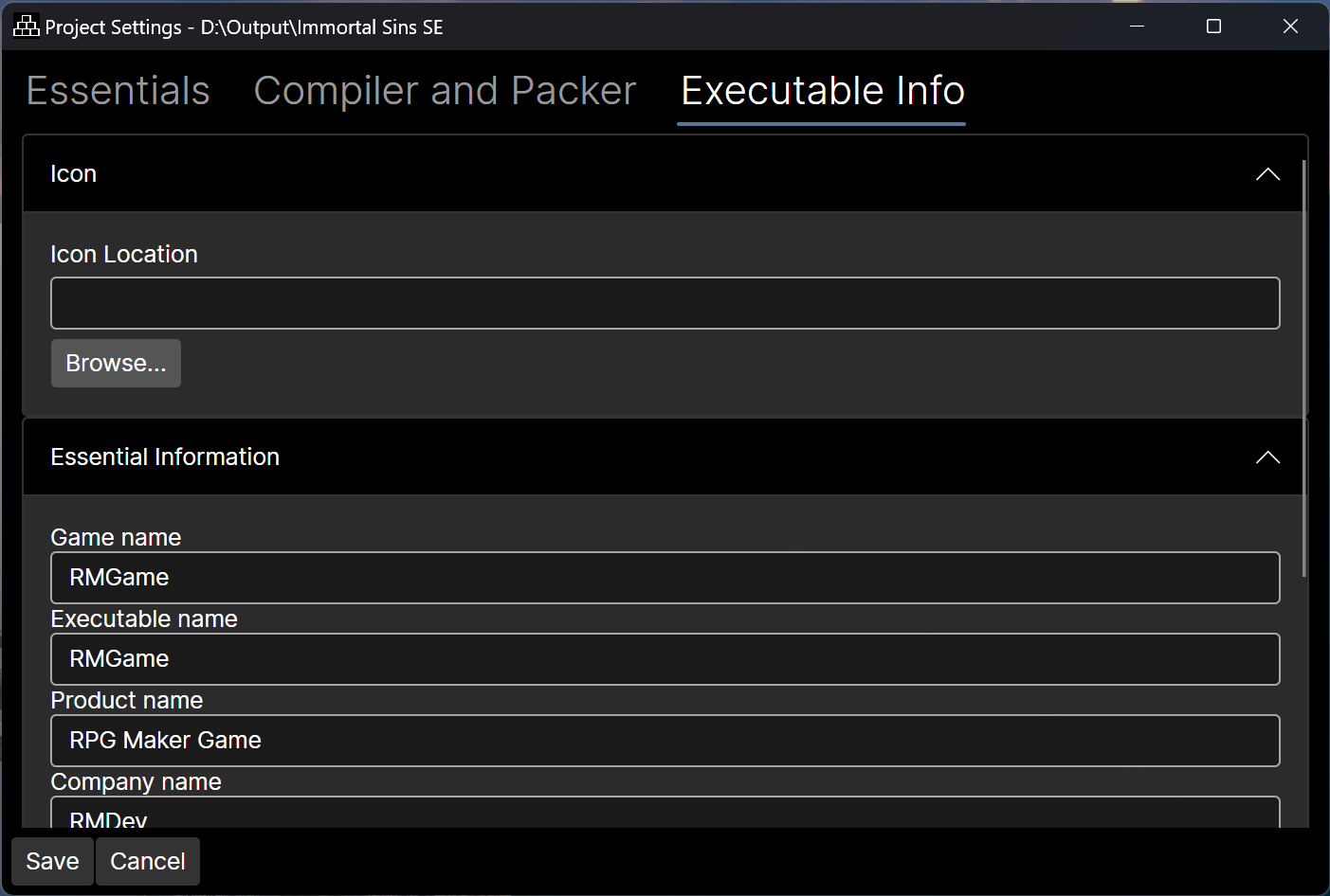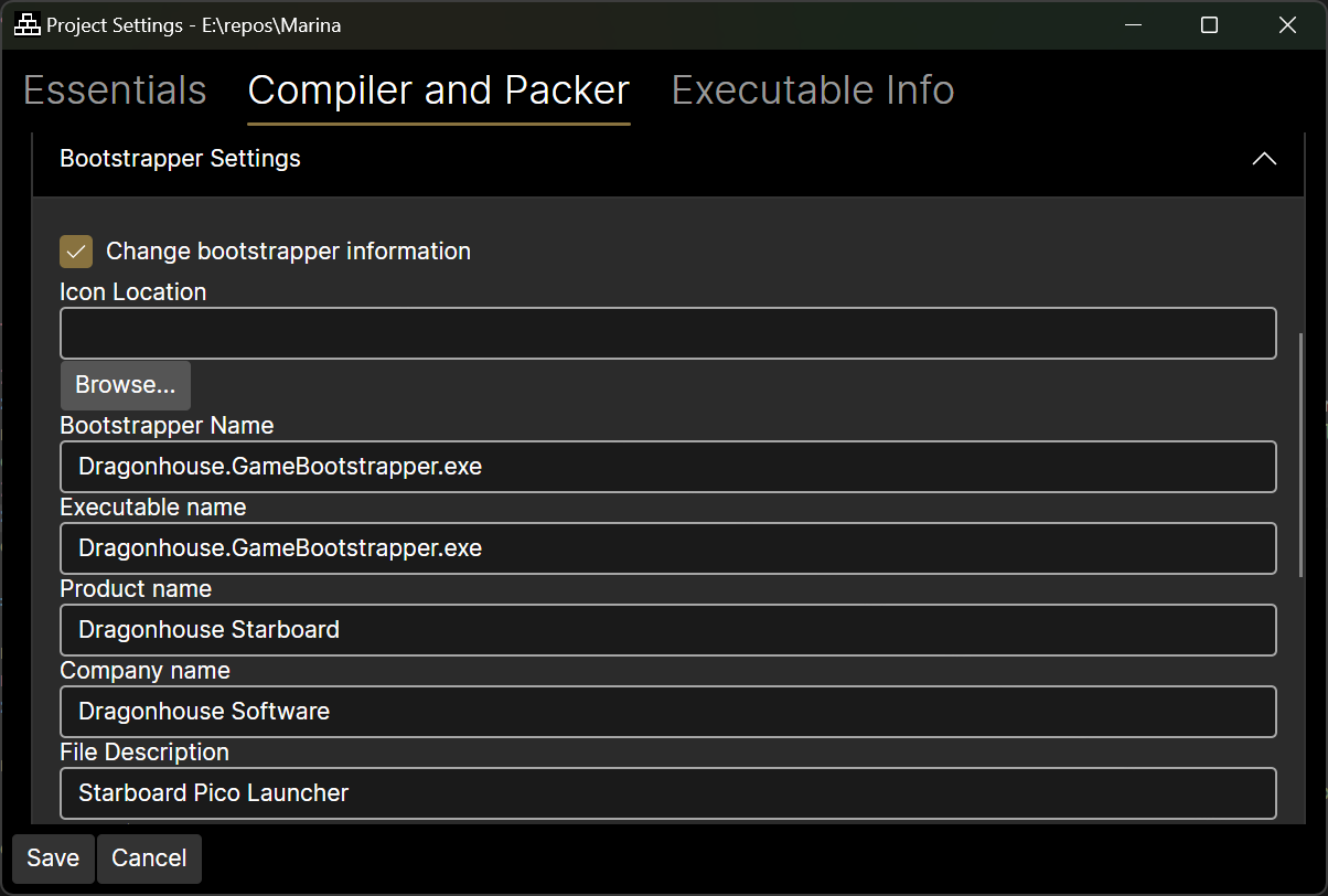 On this tab, you can configure the metadata that will be applied to the new executable. From an icon to version number, you can input them here.
