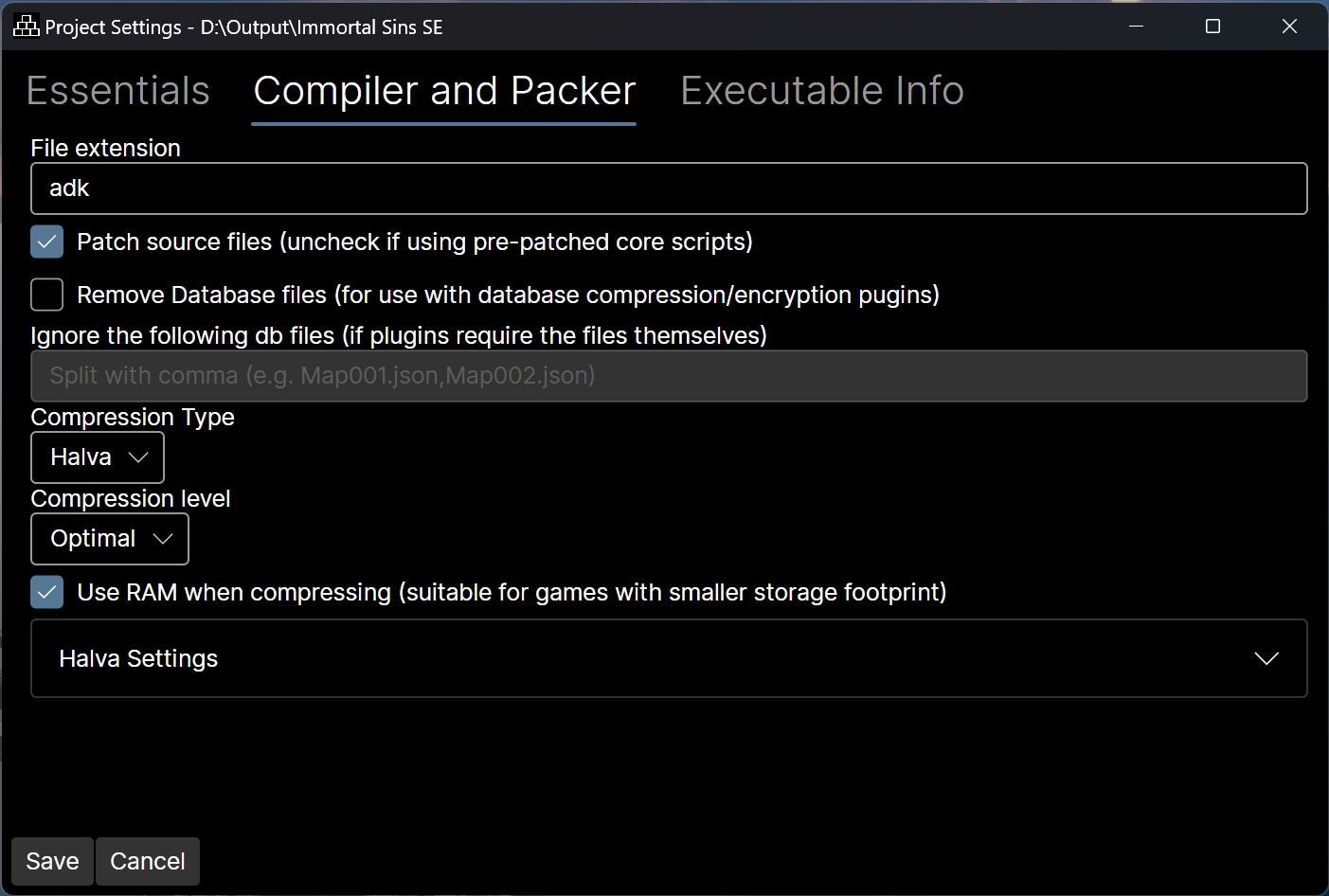 Use RAM for compression | Uses the system's memory when creating the archive or packages. This is useful for systems that have constrained storage and the project is small. |