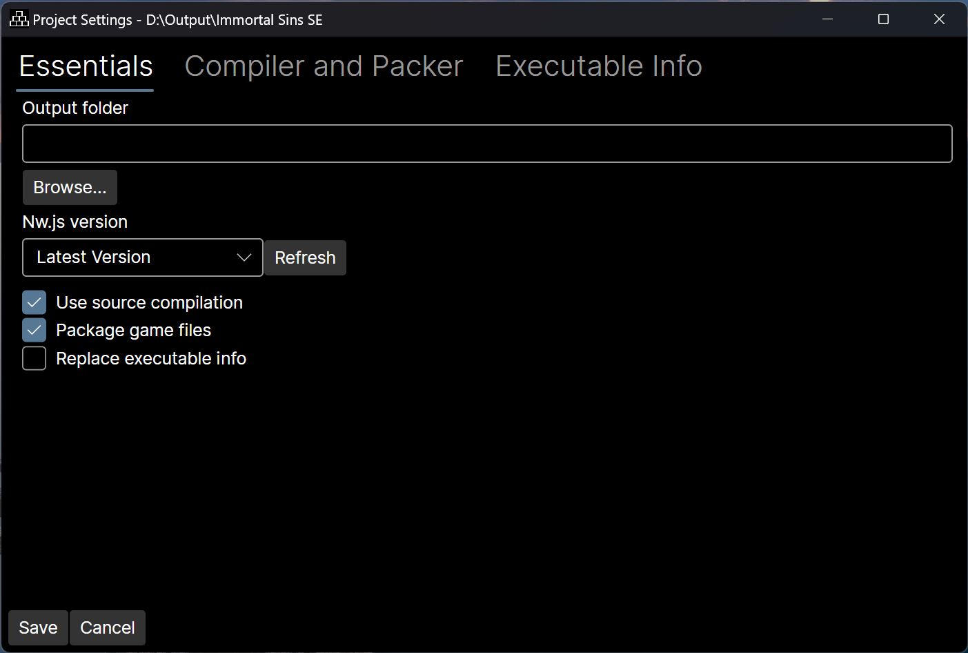NW.js version | Select the version of NW.js you want to use. Click on Refresh to fetch an updated list. |