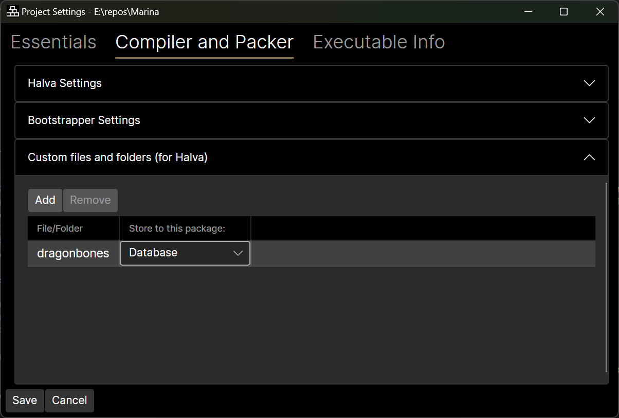Starting with version R5.04, you can add custom folders and files (that reside on the game's folder) to packages.